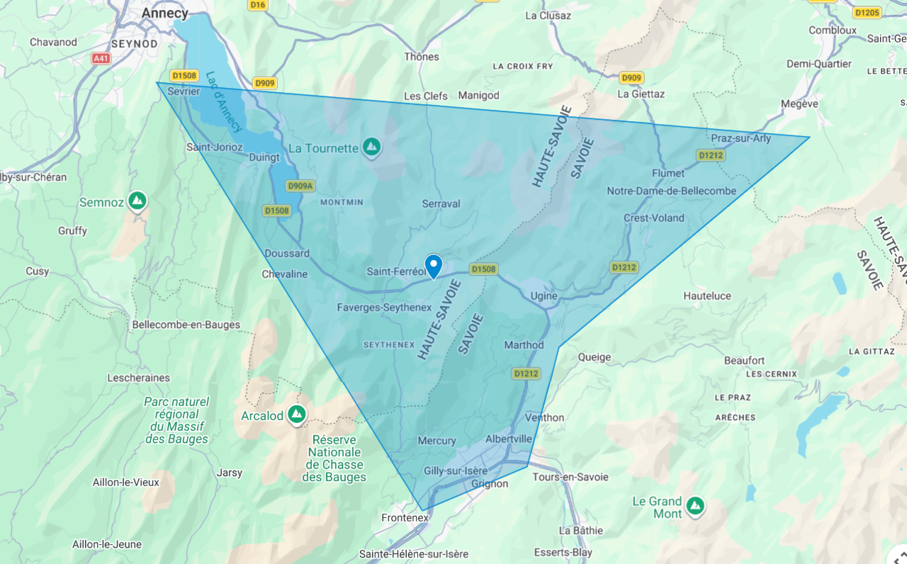 Nous intervenons principalement à Faverges, mais également dans les communes environnantes telles que Ugine, Albertville, Doussard, Talloires, Val d’Arly ou encore Thônes. Notre zone d’intervention s’étend aussi autour du lac d’Annecy, notamment à Saint-Jorioz, Sevrier, Veyrier-du-Lac et Menthon-Saint-Bernard.